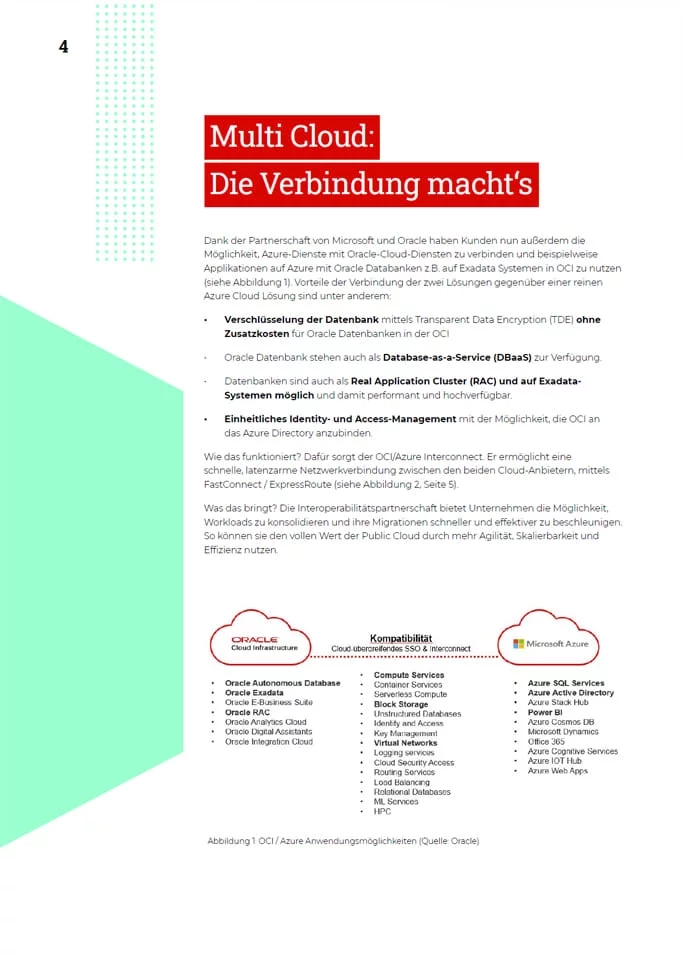Wollen Unternehmen Ihre On-Premises-Lösungen schnell und risikoarm migrieren, stehen die IT-Abteilungen vor einigen Herausforderungen. Das vorliegende Whitepaper zeigt einen Ausweg aus dem Dilemma: Im Fokus stehen beispielhaft zwei konkrete Database Service Use Cases, die die Benefits der Oracle Cloud Infrastructure – kurz OCI – in Bezug auf die Transformation von I/O-intensiven Enterprise Workloads herausstellen.
