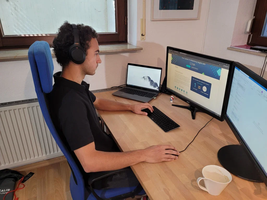 Als dualer Student will ich unbedingt die CCNA Zertifizierung abschließen, worauf ich mich derzeit vorbereite. Zurzeit bin ich viel im Staging aktiv und konnte schon nach kurzer Einarbeitungszeit selbstständig Configs für Switches schreiben und aufspielen. Besonders cool fand ich auch die Möglichkeit schon früh mal direkt beim Kunden vor Ort eingesetzt zu werden.