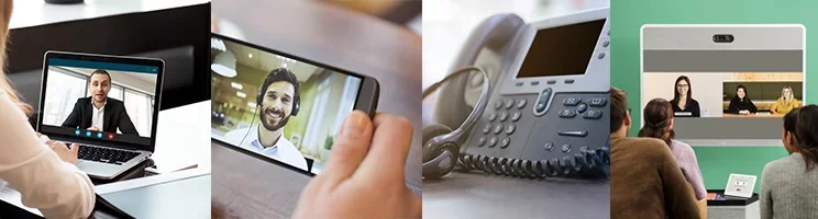 Die Collaboration-Lösung Cisco Webex bietet im Gegensatz zu anderen Tools den Vorteil, dass die Software auf unterschiedlichen Endgeräten genutzt werden kann. Cisco Webex kann beispielsweise über das Smartphone als App (Android oder iOS) abgerufen werden. Eine weitere Möglichkeit ist Teilnahme an Meetings über das Notebook über den Cisco Webex Web Client. Mitarbeiter können sich ebenfalls über digitale Whiteboards wie das Cisco Webex Board in Konferenzen einwählen. Außerdem bietet Cisco mit VoiP-Telefonen und Telepresence-Systemen weitere Geräte an, um mit Cisco Webex Audio- oder Videokonferenzen durchführen zu können.