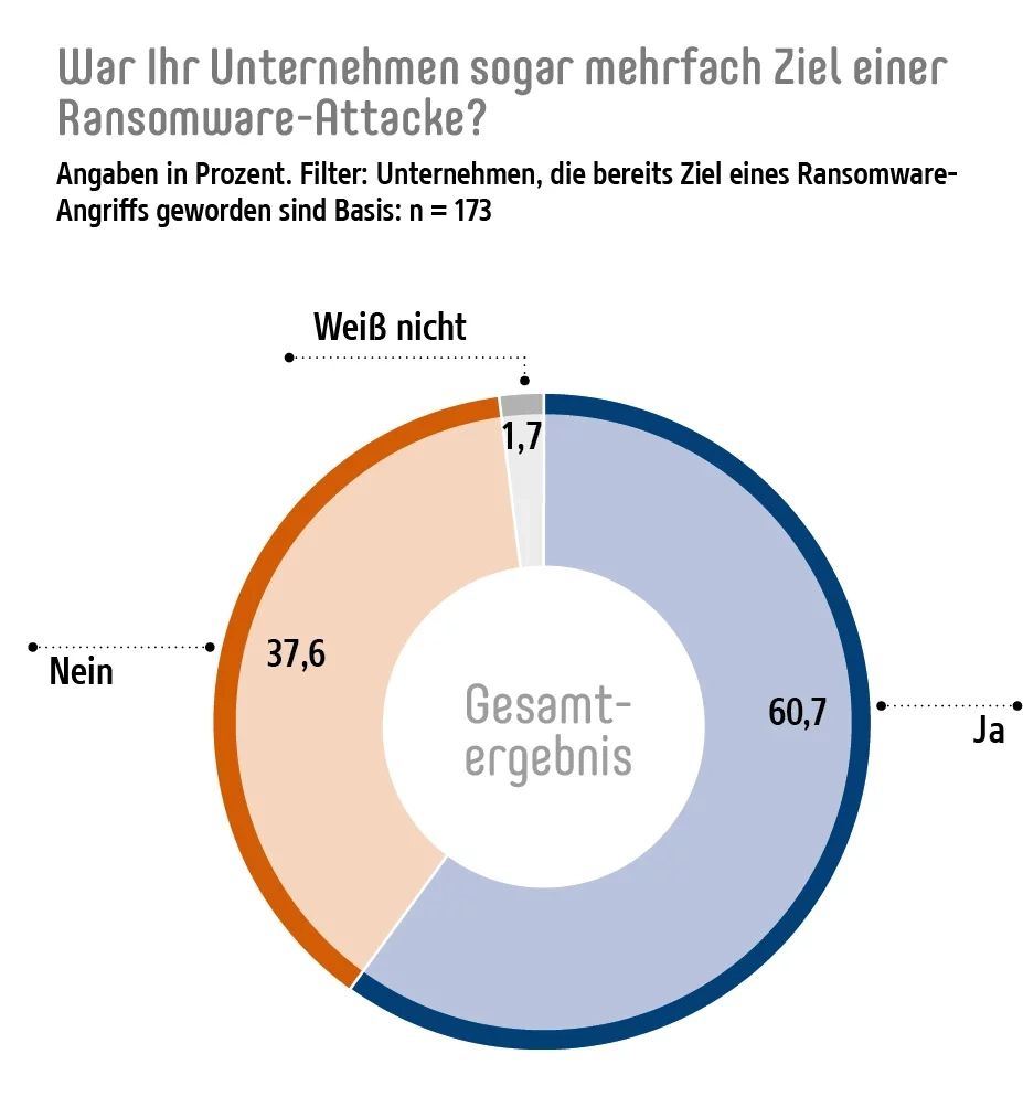 60 Prozent betroffener Unternehmen wurden mehrmals Opfer einer Ransomware Attacke.