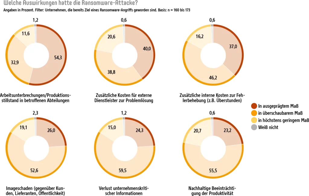 Die größten Auswirkungen von Ransomware-Attacken sind Arbeitsunterbrechungen und zusätzliche Kosten.