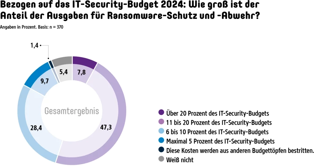 55 Prozent der Befragten verwenden mindestens elf Prozent ihres IT-Sicherheitsbudgets für Ransomware- Schutz